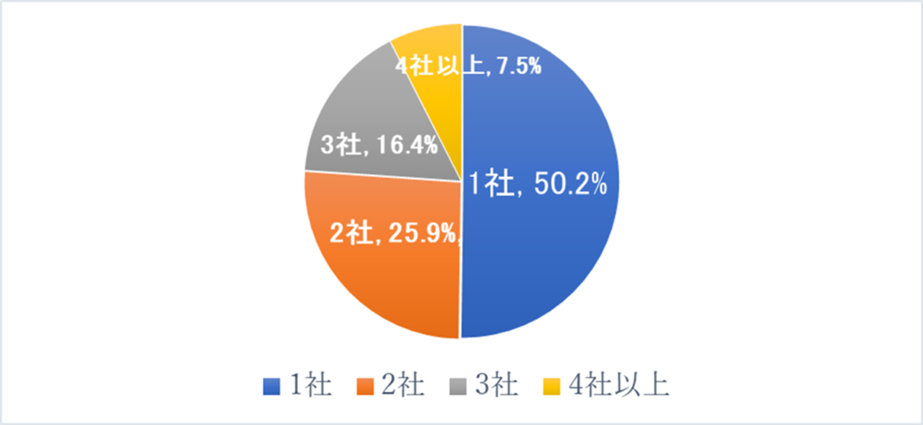 見込客の50.2%は1社からのみ見積を取得。見込客の25.9%は2社からの相見積もり。3社以上の相見積り23.9%。言い換えれば、50.2%は一社特命発注。すなわち、見込客が100人いれば、50人が一社特命発注(契約)し、最低でも200人いれば100人が契約してくれる。これが見込客集客が2倍になれば、売上げも2倍になるという意味である。